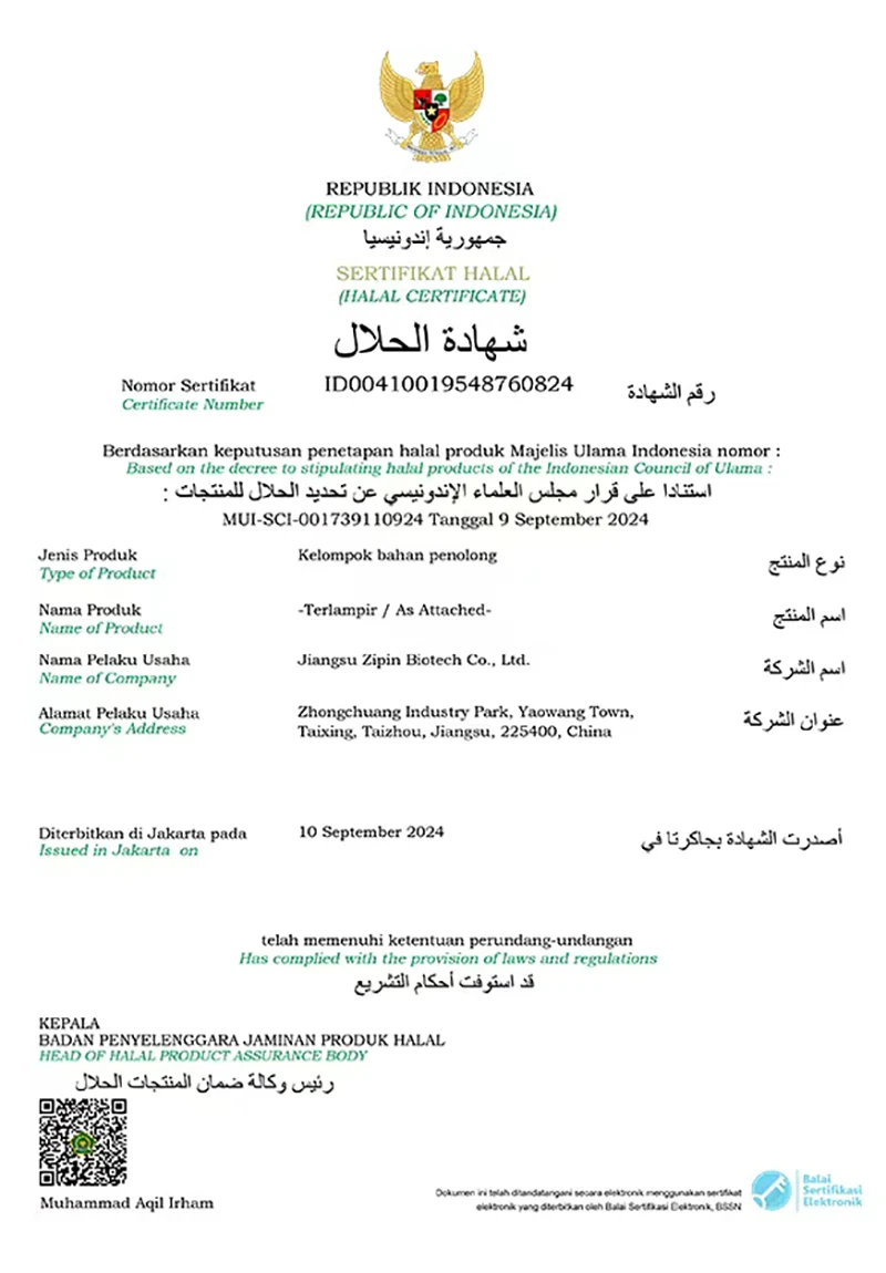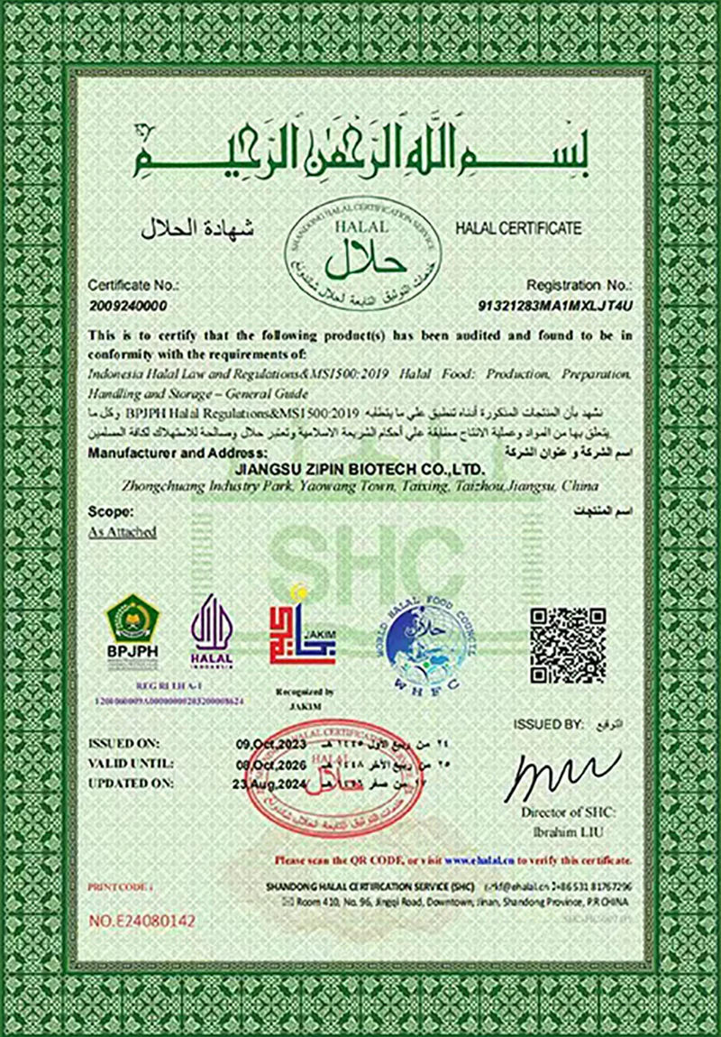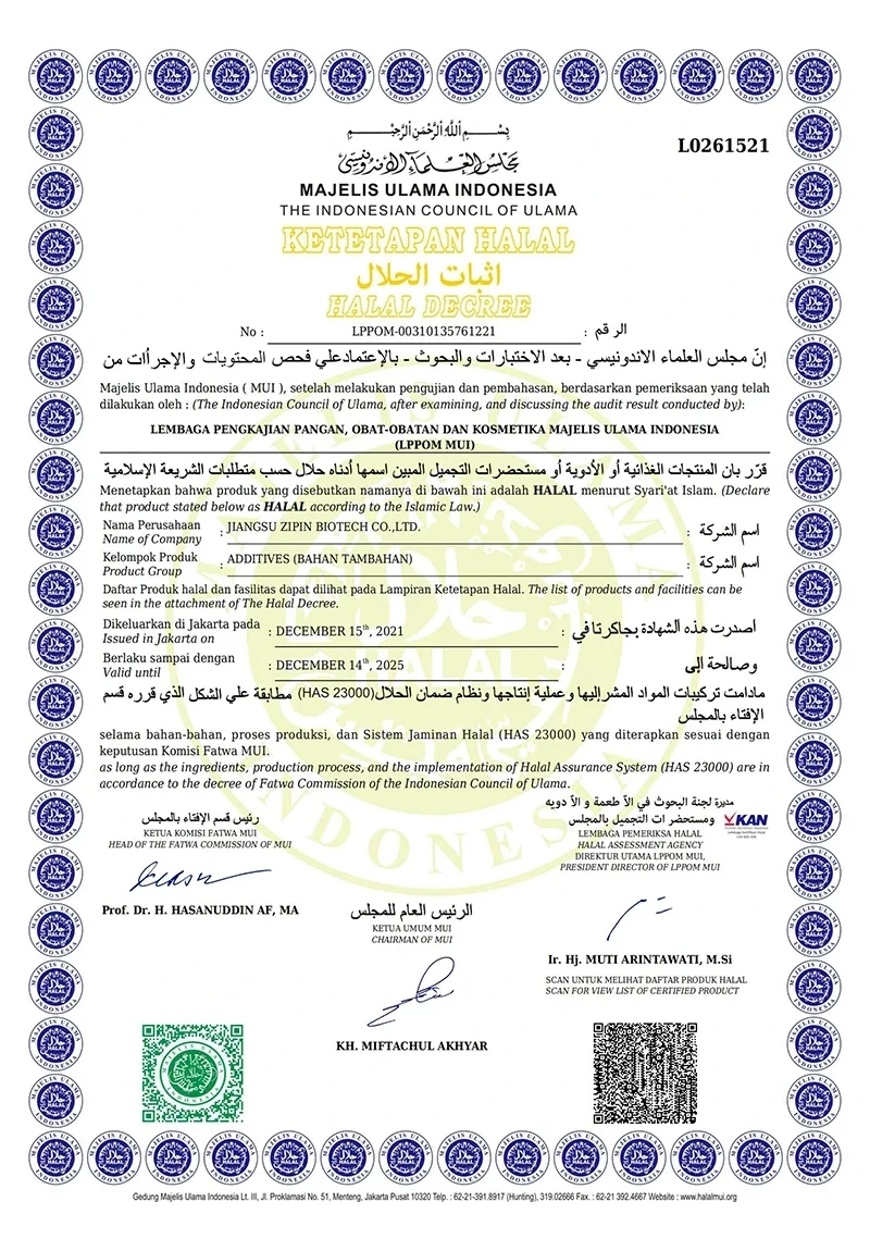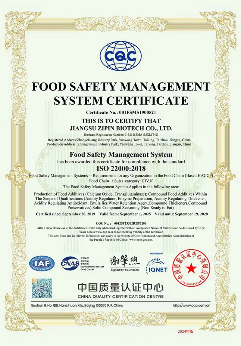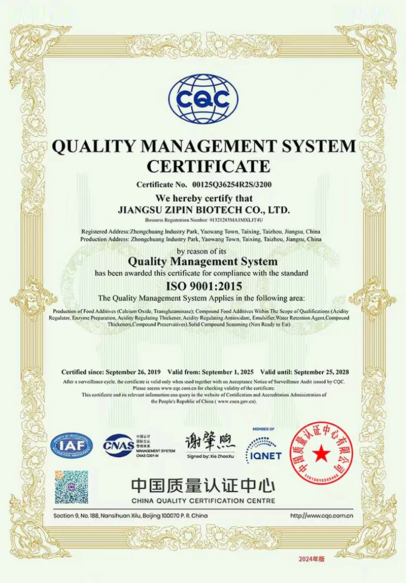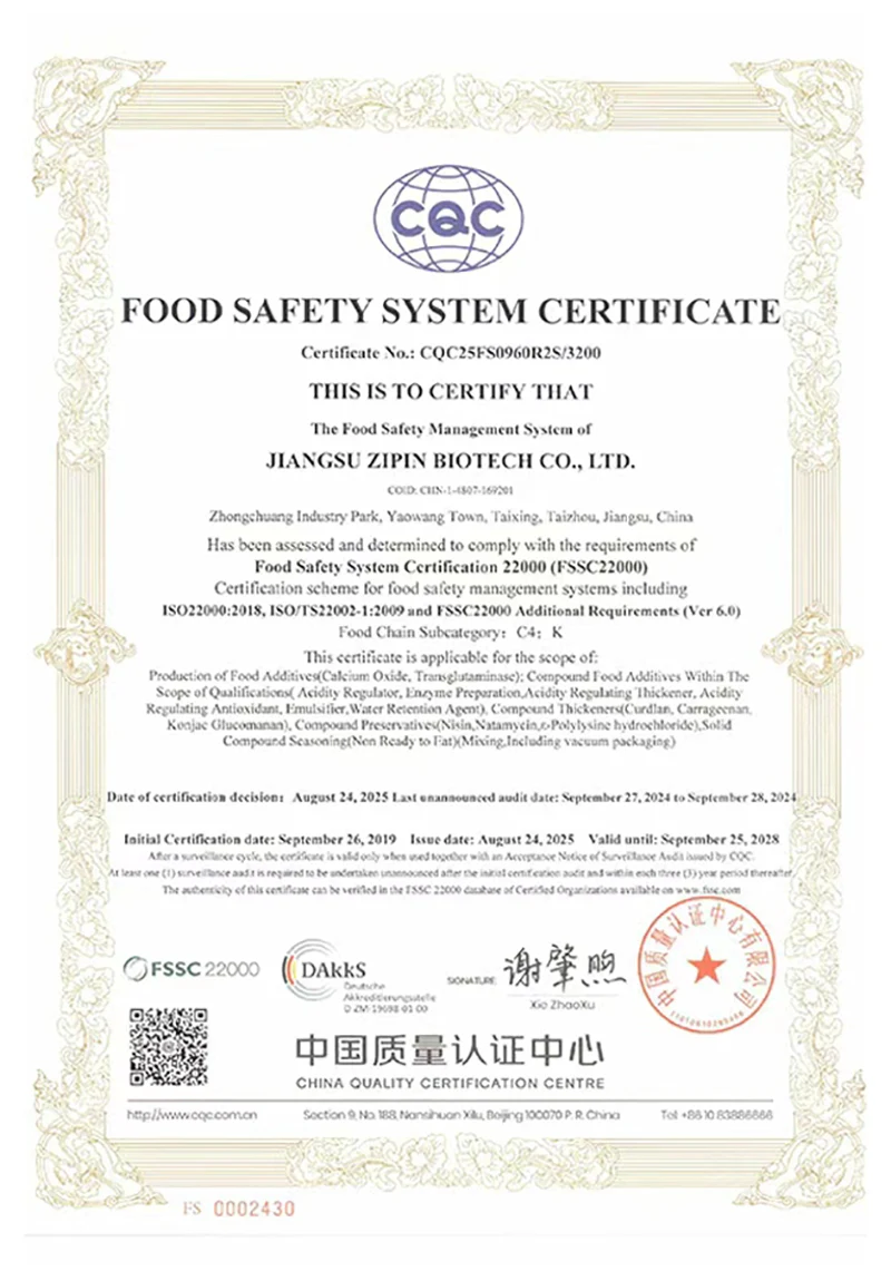 ஜியாங்சு ஜிபின் பயோடெக் கோ., லிமிடெட். 20,000㎡ பரப்பளவில் 2016 இல் நிறுவப்பட்டது. ஒரு நவீன தனியார் நிறுவனமாக, நாங்கள் இப்போது முக்கியமாக R&D, உணவு சேர்க்கைகள் உற்பத்தி மற்றும் விற்பனையில் ஈடுபட்டுள்ளோம். எங்கள் முக்கிய தயாரிப்புகள்டிரான்ஸ்குளூட்டமினேஸ், கர்ட்லான், ε-பாலிசைன், Nisin, Natamycin மற்றும் பிற உணவு சேர்க்கைகள்.
